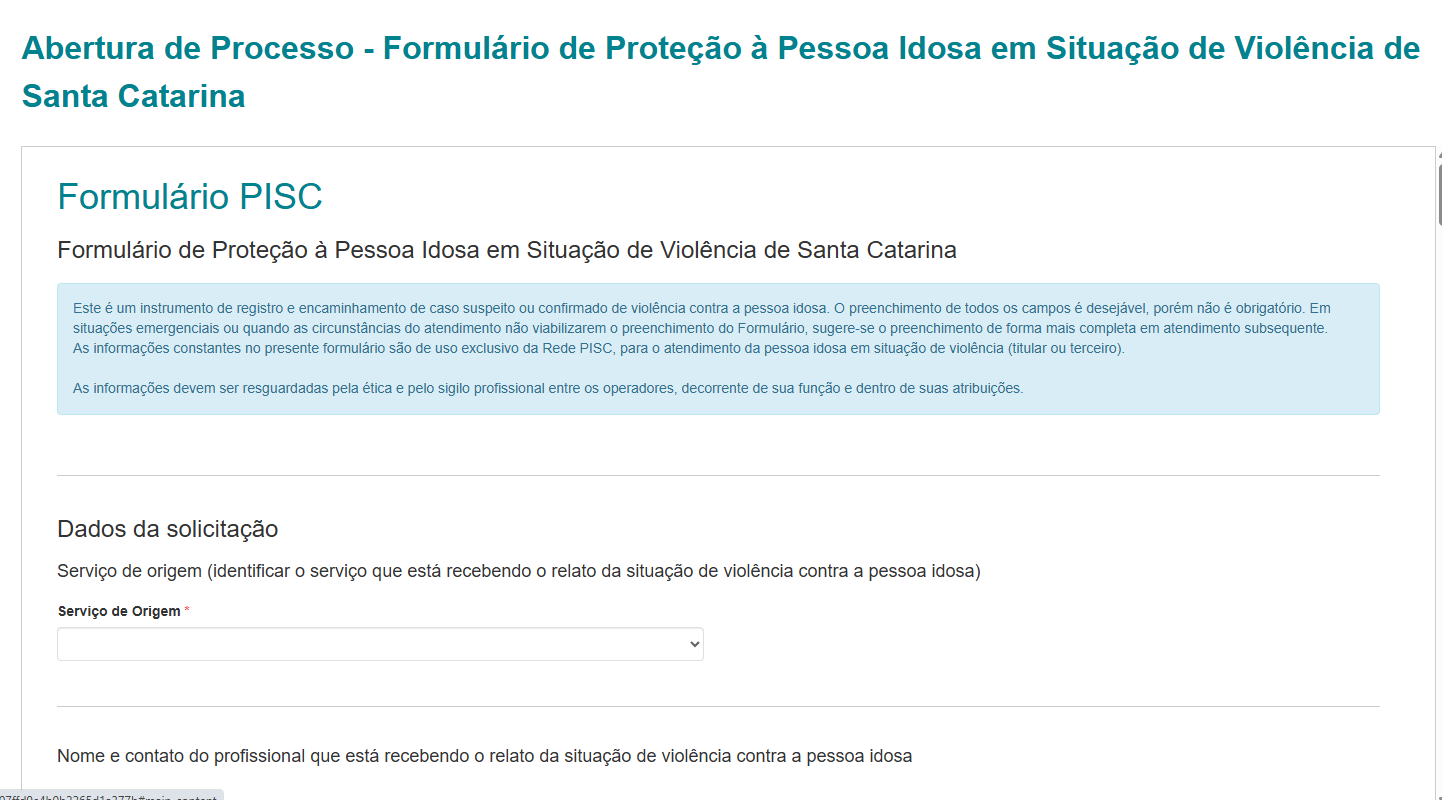 - Elaboração de Formulário de Proteção à Pessoa Idosa em Situação de Violência de Santa Catarina (Formulário PISC) e de campanha referente à violência contra idosos veiculada nas redes sociais;