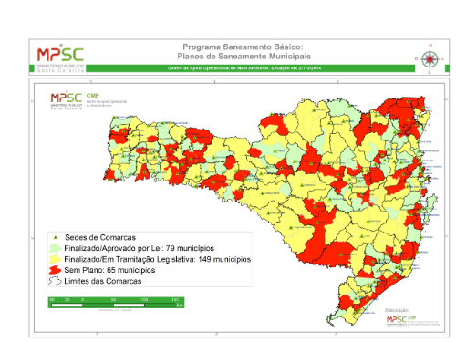 1. Diagnóstico de que 54% dos municípios catarinenses possuem Plano de Saneamento Básico aprovado por lei e atendem às metas de universalização, conforme informações fornecidas pelas respectivas agências reguladoras e concessionárias de serviços públicos. Além disso, 36% dos municípios têm o referido plano aprovado por lei, embora ainda não atendam plenamente às metas de universalização. Dessa forma, 91% dos municípios de Santa Catarina contam com um Plano de Saneamento Básico aprovado por legislação municipal.