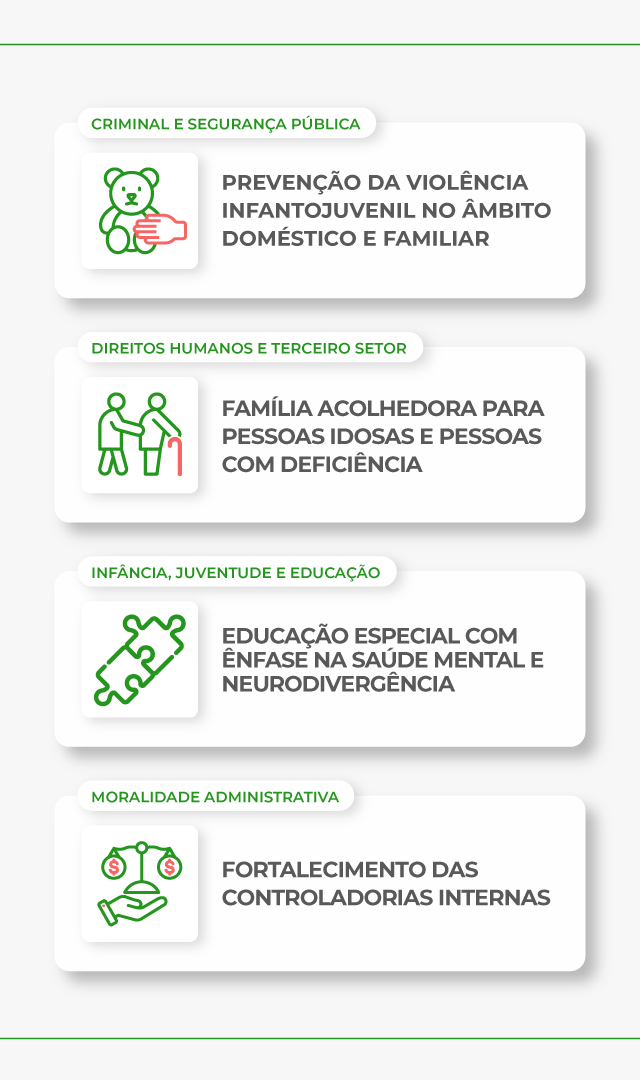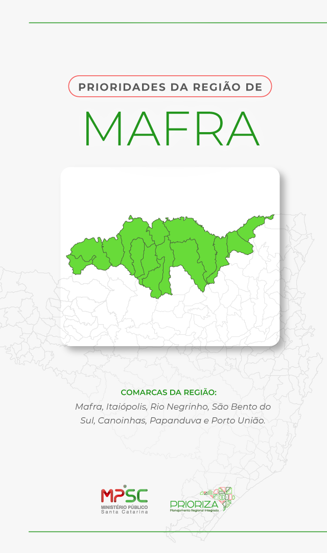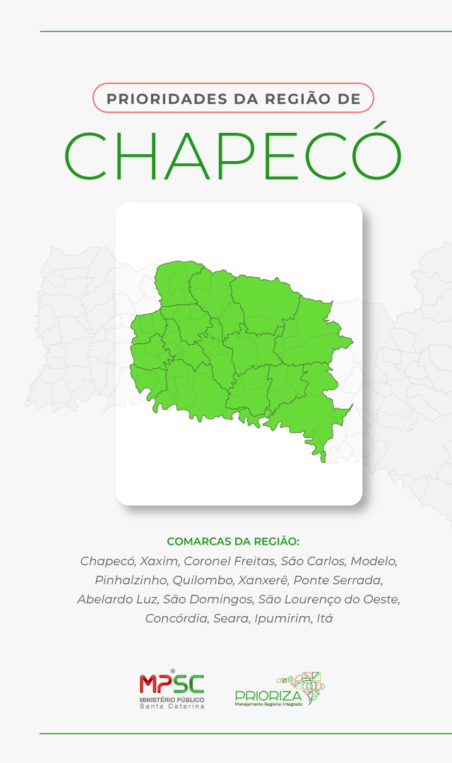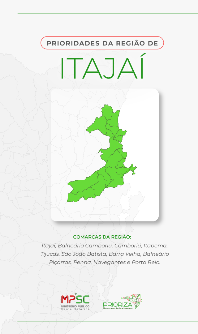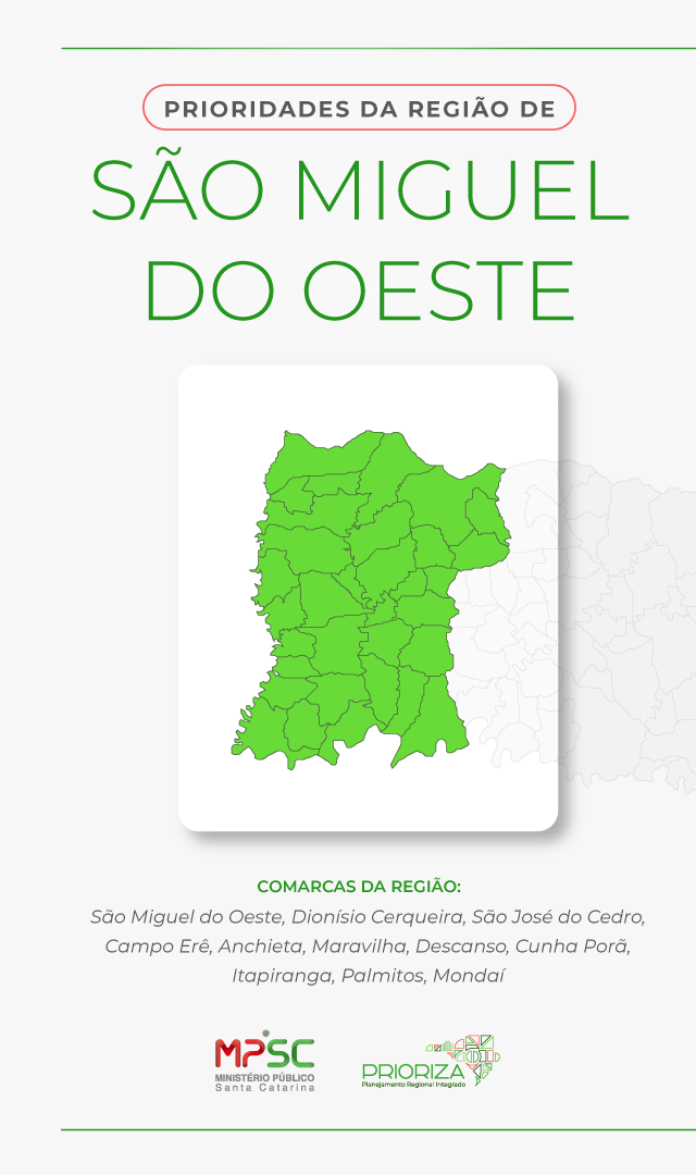 O Prioriza é um projeto do Ministério Público de Santa Catarina (MPSC) criado para tornar a atuação da instituição mais próxima da realidade das pessoas em cada região do estado. Por meio de encontros com Promotores e Promotoras de Justiça, o projeto identifica os principais desafios por região do Estado e define prioridades de atuação com base nas demandas reais da população. A proposta é construir soluções mais eficazes e alinhadas às necessidades de cada comunidade, fortalecendo a presença do MPSC nos territórios e promovendo entregas mais qualificadas à sociedade.