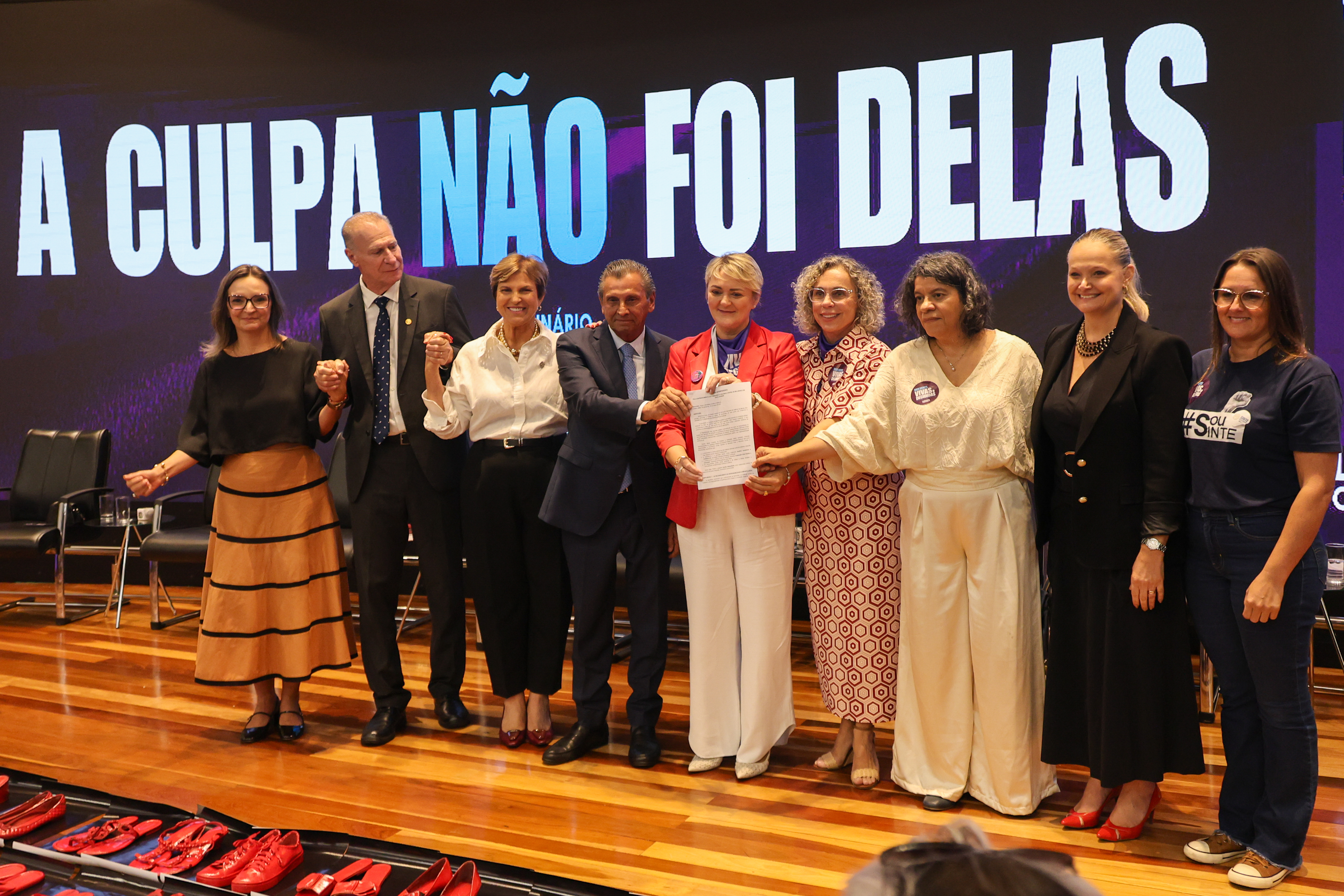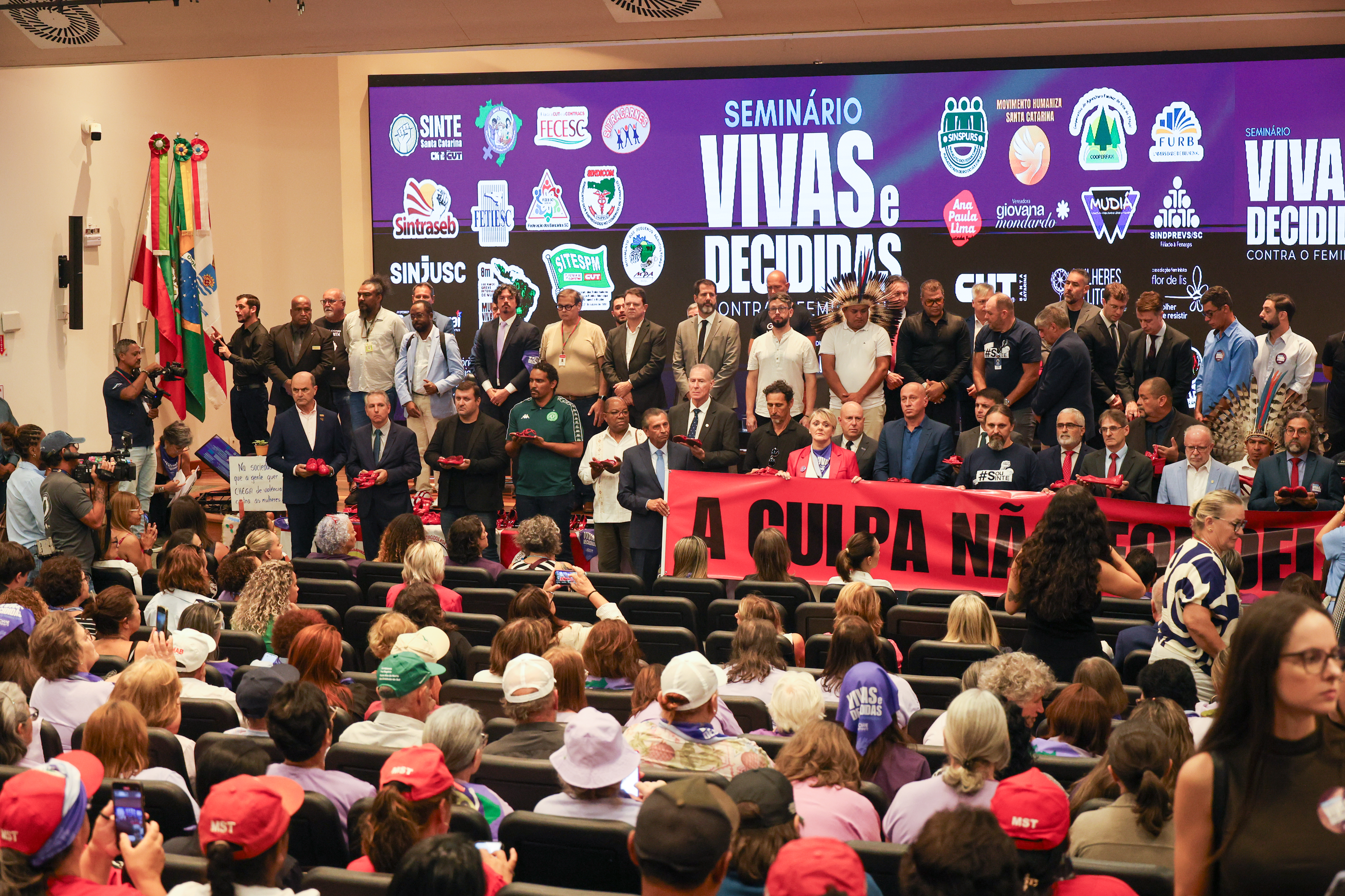 Também participaram da mesa o Presidente da ALESC, Deputado Julio Garcia; o Presidente do Tribunal de Contas de Santa Catarina, Herneus De Nadal; a Secretária de Estado da Assistência Social, Mulher e Família, Adeliana Dal Pont; a Vice-Presidente do Fórum Nacional de Violência Doméstica, Juíza Naiara Brancher; a Secretária Nacional de Enfrentamento à Violência contra Mulheres do Ministério das Mulheres, Estela Bezerra; a Diretora do Sindicato dos Trabalhadores em Educação do Estado de Santa Catarina, Katiane Golim; e a Deputada Federal Ana Paula Lima.