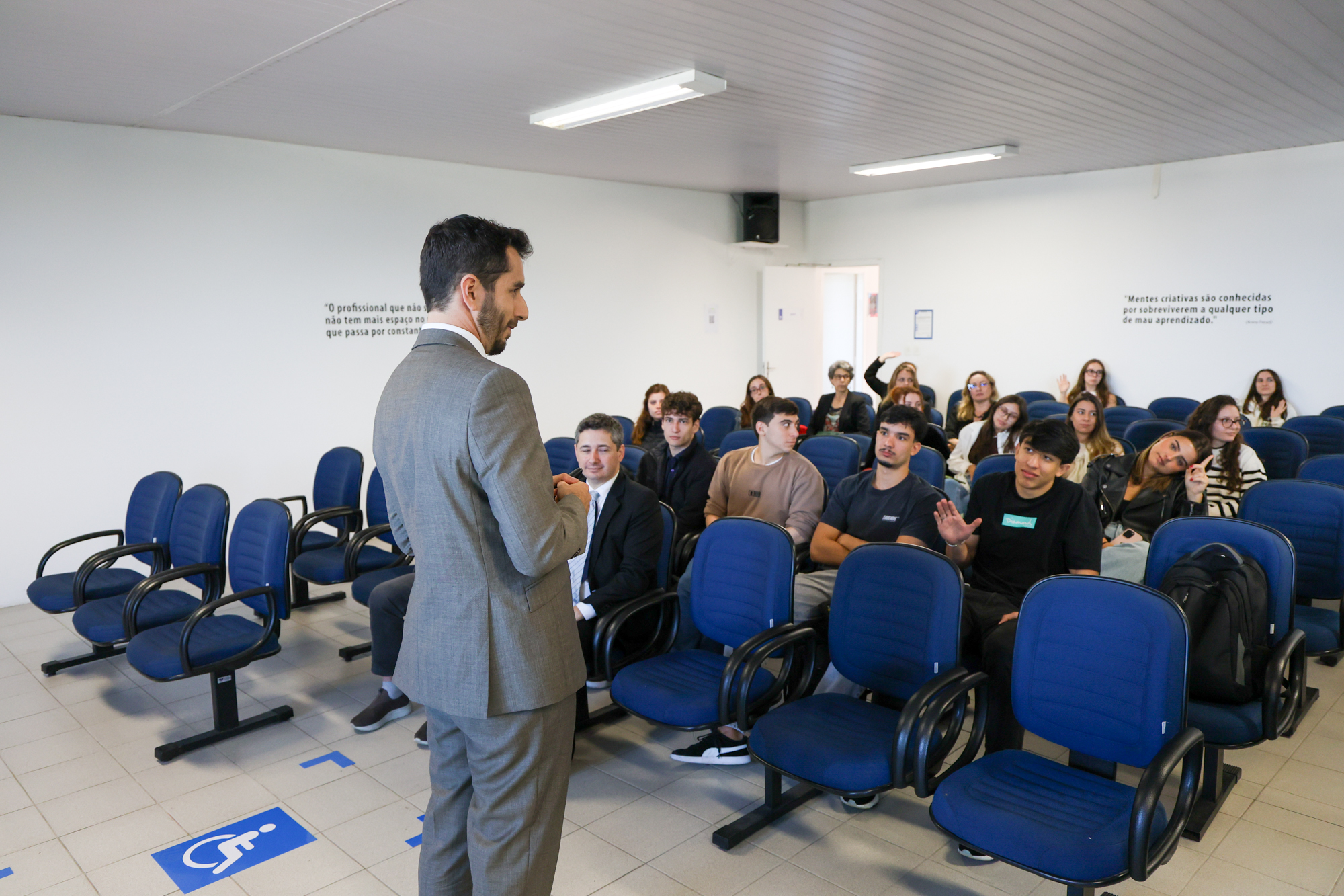 Estudantes do curso de Direito demonstraram interesse e reconhecimento pela experiência. “Acredito que a palestra pode agregar muito à vida acadêmica, especialmente ao curso de Direito, sempre mantendo um alto padrão”, destacou Lucas Cruz. Já Cenira Bader ressaltou o interesse pelos projetos do Ministério Público e pela abordagem da Justiça Restaurativa: “Foi bastante interessante. Já vim com essa perspectiva, pois me interessa muito a função do MP na sociedade. Achei essencial a abordagem sobre justiça restaurativa”, pontuou.