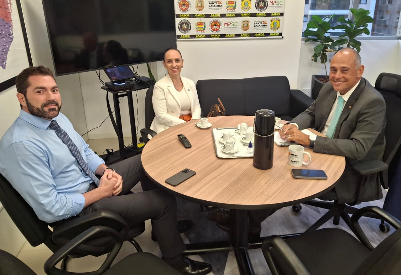 Também na quarta-feira, o GAECO realizou reunião institucional com a Secretária de Estado de Justiça e Reintegração Social de Santa Catarina (SEJURI), Danielle Amorim Silva. O objetivo foi fortalecer o alinhamento e a cooperação entre as instituições, levando em conta que a polícia integra o grupo de atuação.
