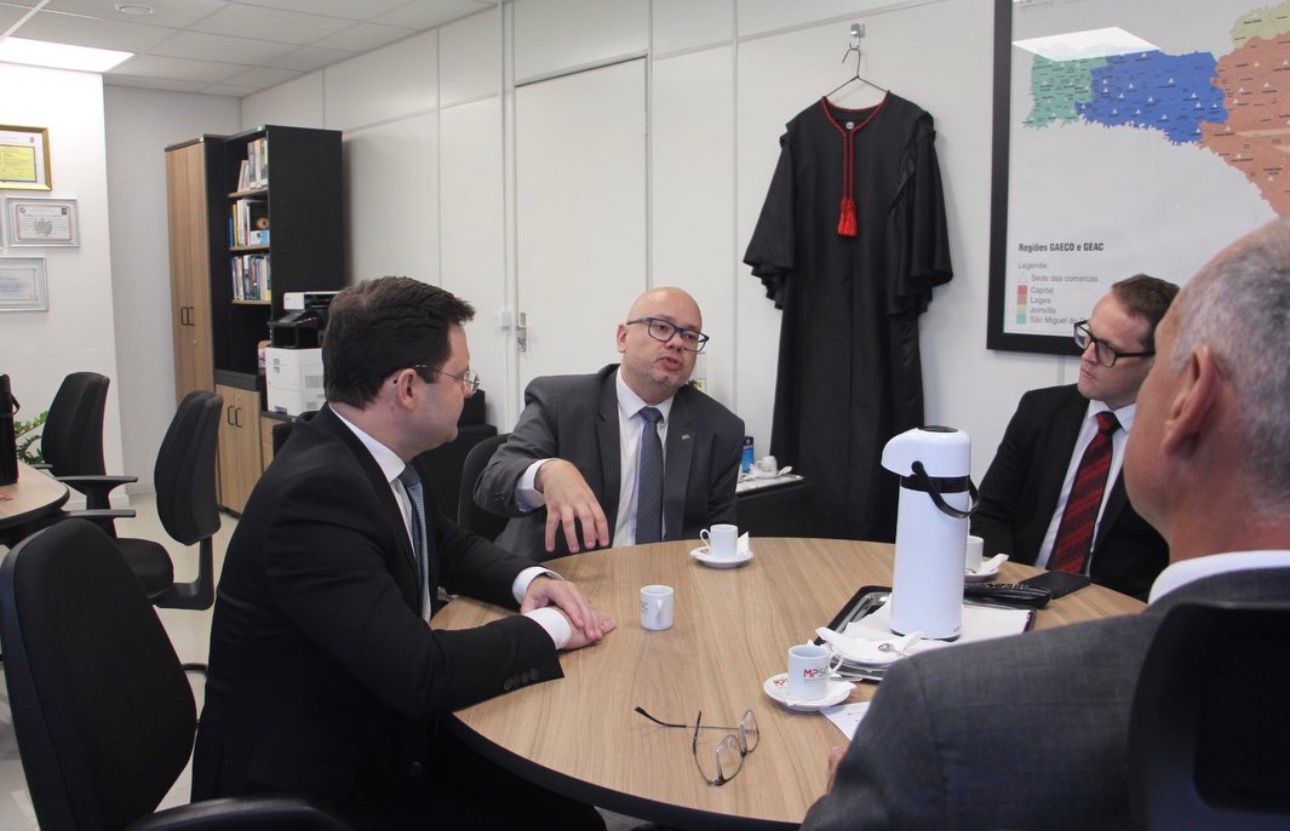 Na quarta-feira, Coordenador Estadual do GAECO, Promotor de Justiça Wilson Paulo Mendonça Neto, o delegado Gustavo Kremer e o Promotor de Justiça, de Joinville, Diogo Dechamps, ambos também com atuação no grupo de atuação especial, receberam na sede do GAECO em Florianópolis o diretor de Defesa das Prerrogativas e Valorização da Advocacia, Rui Cesar Voltolini, e o Procurador-Geral de Prerrogativas da OAB/SC, Rafael Luiz Siewert.
