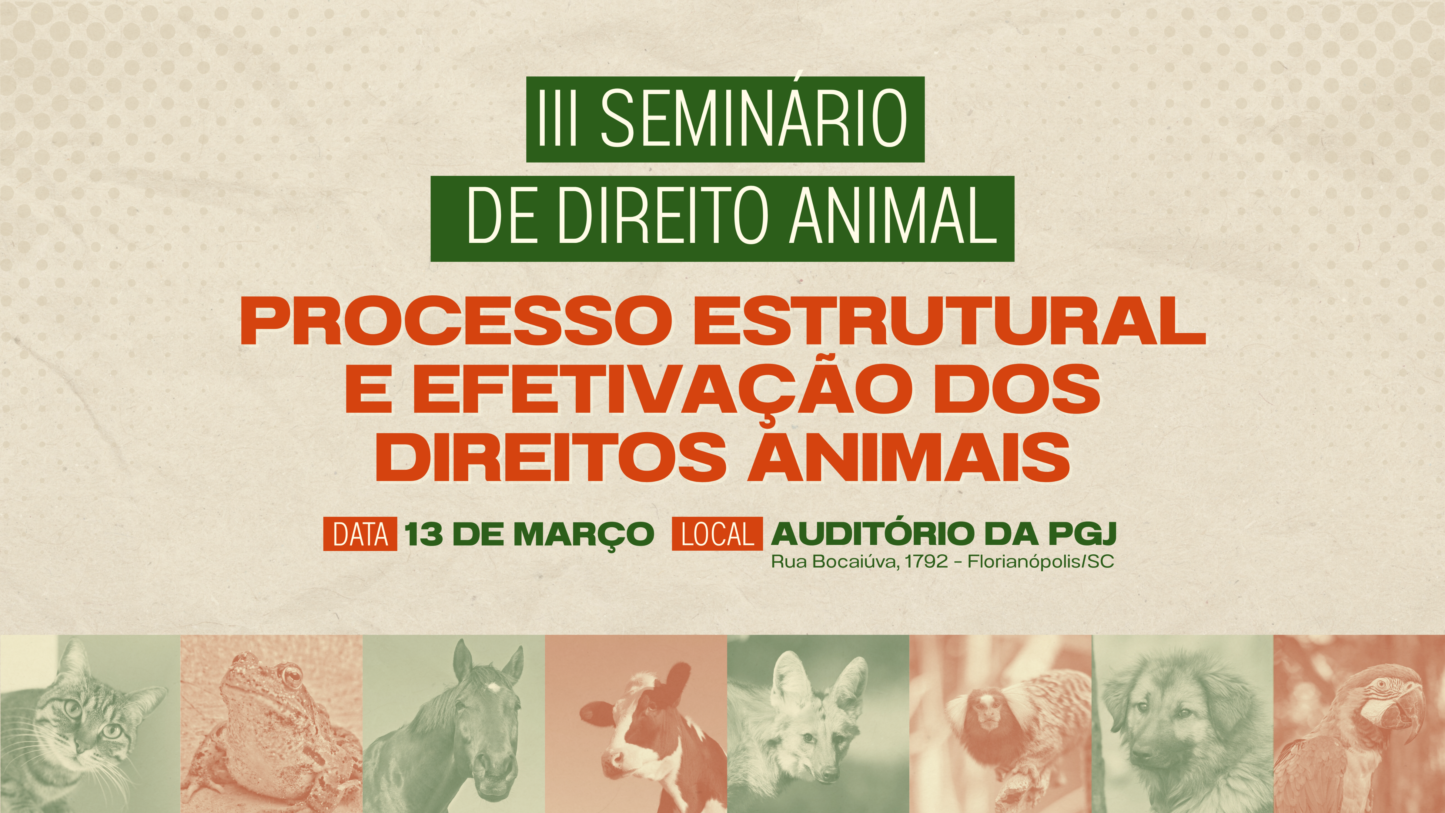 - Encerramento com palestra “Processo estrutural e implementação de políticas públicas de direitos animais”, com o professor titular da Faculdade de Direito da UFPR e Procurador Regional da República Sergio Cruz Arenhart