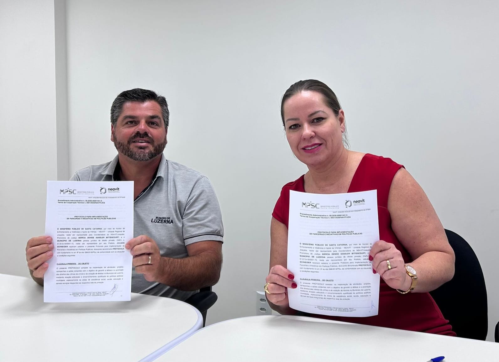 Luzerna é o primeiro município a firmar um termo de cooperação com o recém-instalado Núcleo Regional de Enfrentamento a Violências e Apoio às Vítimas (NEAVIT) de Joaçaba – órgão do Ministério Público de Santa Catarina (MPSC) que visa amparar pessoas vítimas de crimes e que tiveram seus direitos violados.