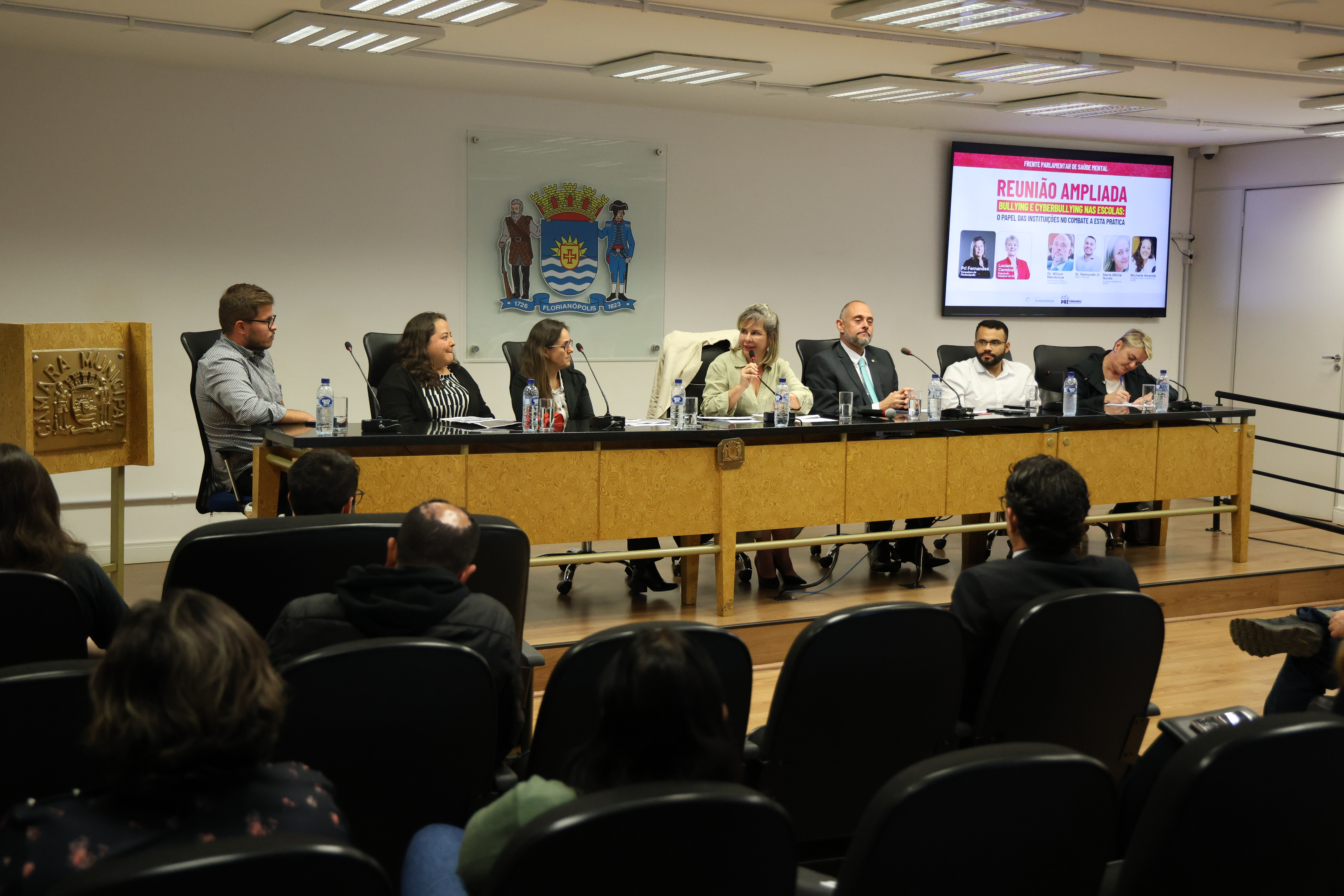 A audiência contou também com a presença da Deputada Estadual Luciane Carminatti da Vereadora Pri Fernandes e do Secretário Adjunto de Educação de Florianópolis, Eduardo Savaris Gutierres, além de painéis apresentados pelo médico psiquiatra Raimundo Júnior, pela psicóloga Maria Albina Nunes e pela assistente social Michelle Amanda, que abordaram os impactos emocionais e sociais do bullying.