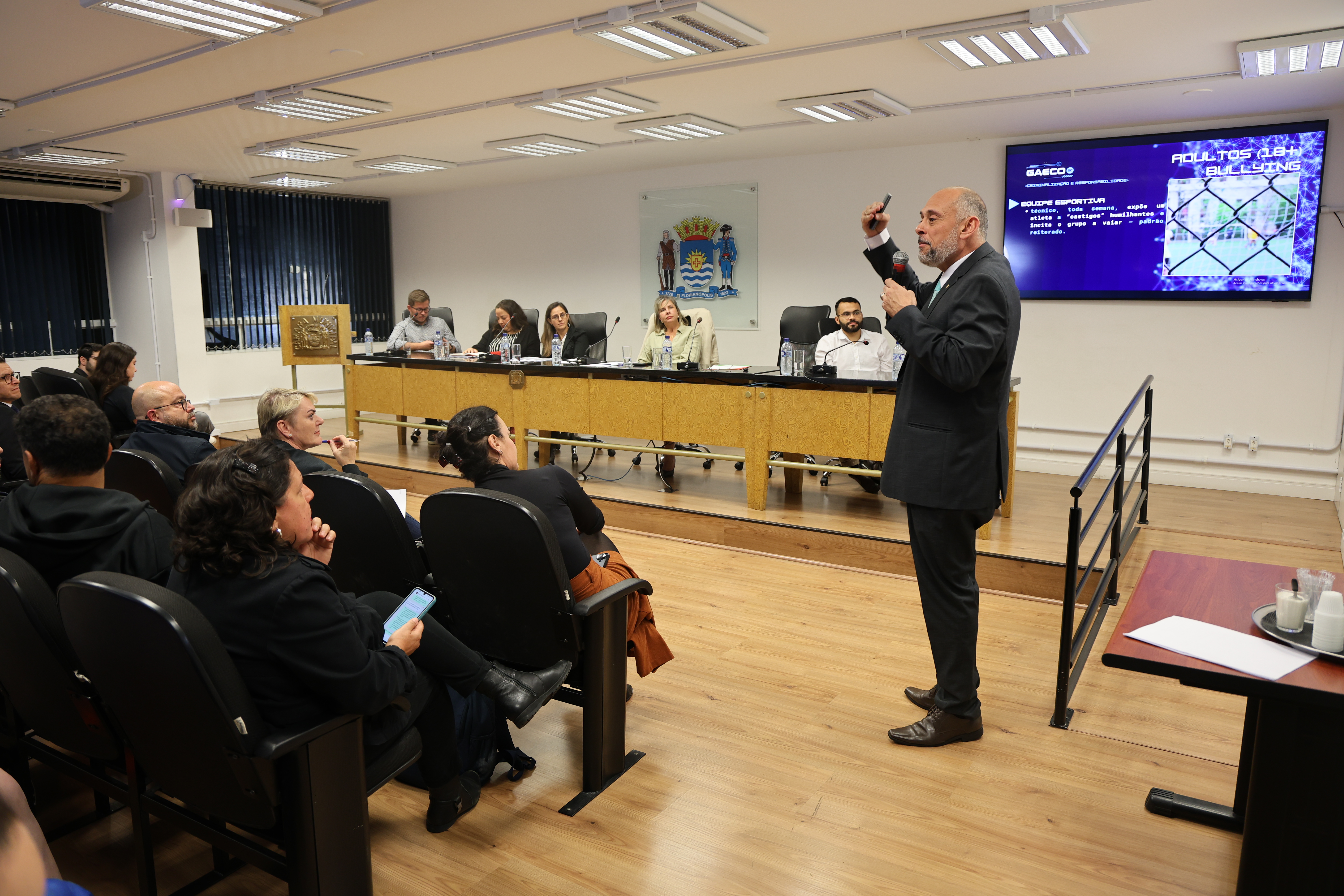 Na noite desta segunda-feira (27/10), o Plenarinho da Câmara Municipal de Florianópolis foi palco de uma audiência pública dedicada ao debate sobre o papel das instituições no enfrentamento ao bullying e ao cyberbullying nas escolas. O evento reuniu autoridades e especialistas para discutir estratégias de prevenção e proteção aos estudantes.