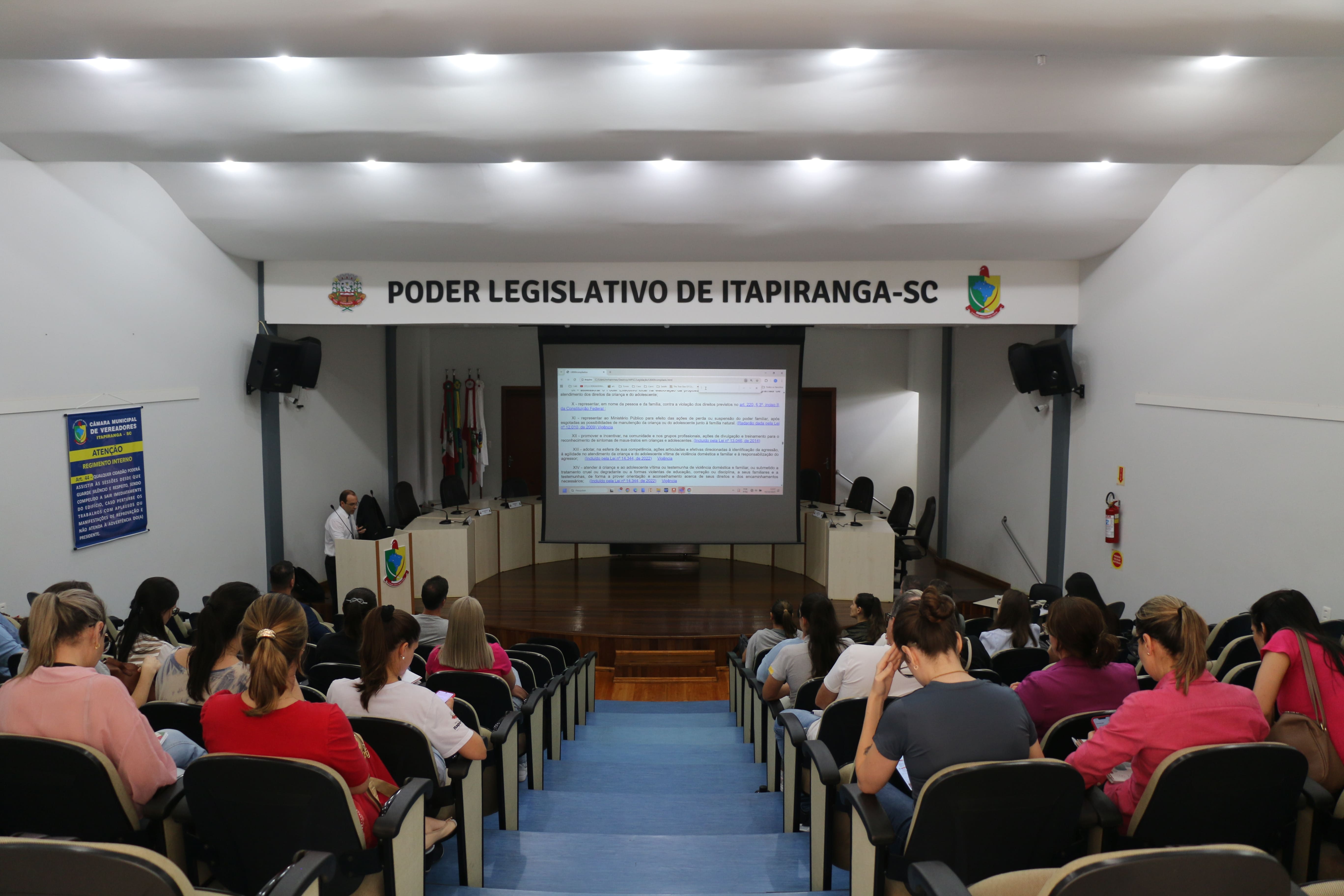 Na sequência, na Câmara de Vereadores, ocorreu uma reunião com os membros do Conselho Tutelar do Município de Itapiranga e, posteriormente, uma reunião ampliada com os demais profissionais da rede de proteção instituída no Município. Essa atividade foi conduzida pelo Promotor de Justiça Maycon Robert Hammes e contou com a participação de representantes das Secretarias Municipais da Assistência Social, da Educação e da Saúde, do Centro de Referência de Assistência Social e da Unidade de Acolhimento Terra Nova, além de integrantes da Coordenadoria Regional de Educação e da direção e orientação pedagógica de algumas unidades de ensino locais.