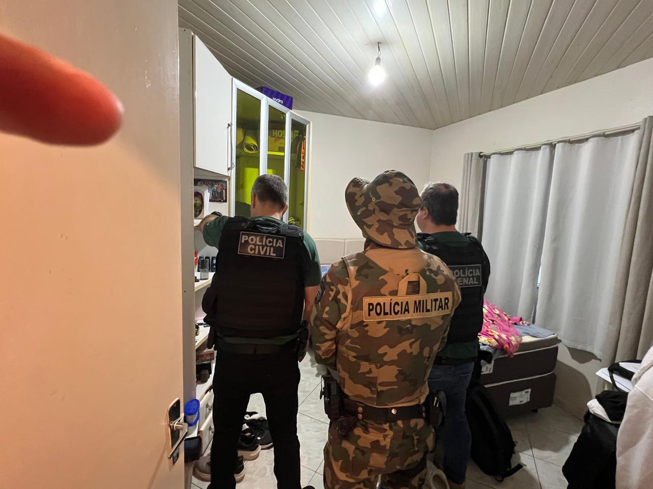 As ordens judiciais estão sendo executadas de forma simultânea nas cidades de Joinville, Florianópolis, Armazém, Joaçaba, Águas Mornas, Araranguá e Brusque. Durante o cumprimento dos mandados foram realizadas seis prisões em flagrante, trÊs pelo crime de porte ilegal de arma de fogo e três pelo crime do uso de documento falso.