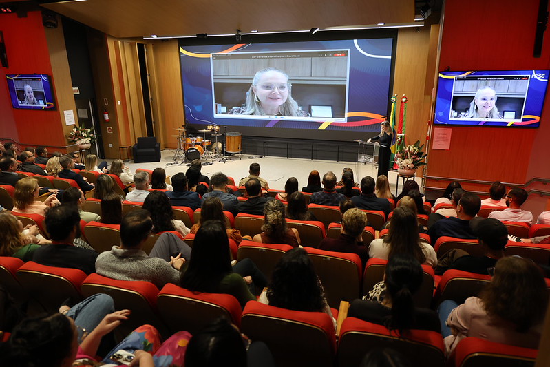 A cerimônia presencial ocorreu no auditório da sede da Procuradoria-Geral de Justiça, em Florianópolis. A Procuradora-Geral de Justiça, Vanessa Wendhausen Cavallazzi, entrou ao vivo de Brasília, onde cumpre agenda institucional, para deixar uma mensagem aos servidores do MPSC. “Mesmo à distância, quero estender o meu abraço mais carinhoso a cada um e a cada uma de vocês como um gesto de apreço e de gratidão. O Ministério Público não é uma instituição abstrata. Ele respira, ele se move e cumpre sua missão graças ao trabalho comprometido dos nossos servidores. Vocês são a ponte entre o ideal constitucional e a concretude da justiça social. [...] Que este dia seja mais do que uma homenagem; que ele seja um lembrete de que o Ministério Público de Santa Catarina caminha firme, porque todos nós caminhamos juntos. Àqueles que dedicaram 10, 20 e 30 anos de suas vidas: vocês são a verdadeira expressão do que significa servir”, afirmou.