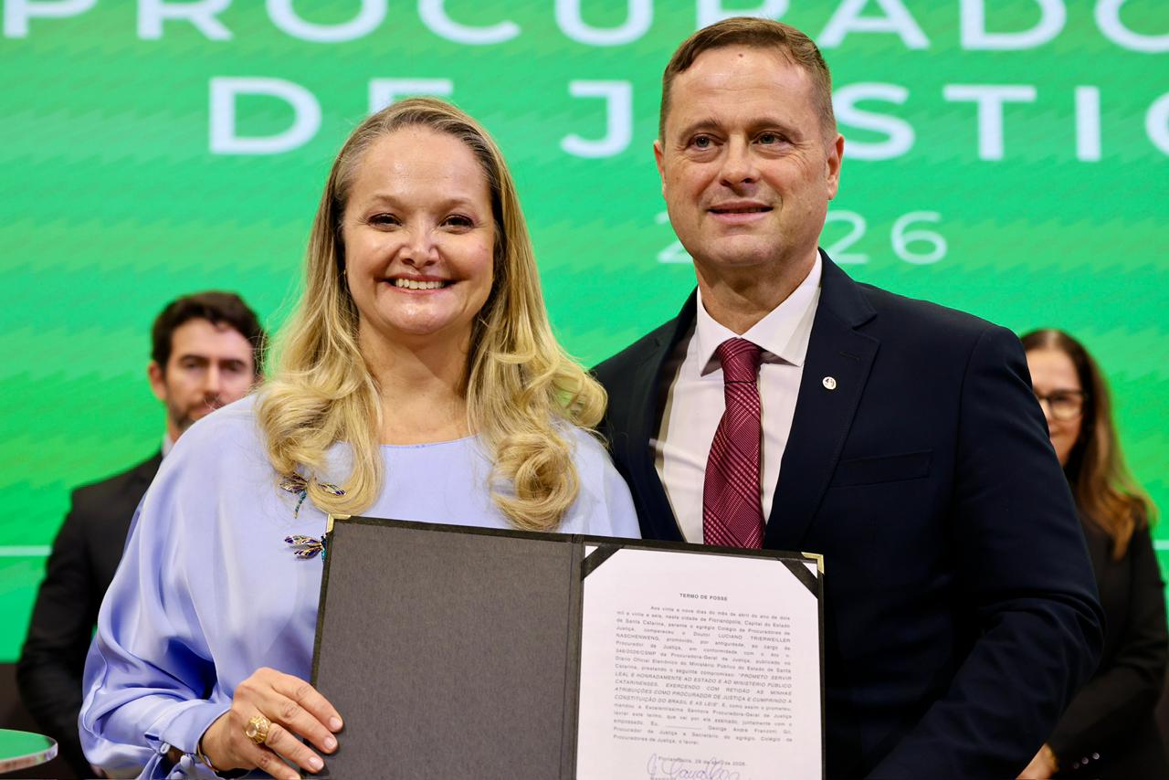 A empossada Helen Crystine Corrêa Sanches declarou que a posse representa, ao mesmo tempo, a consolidação de uma trajetória e o início de um novo ciclo na carreira. “Este momento é, ao mesmo tempo, um ponto de chegada e um novo ponto de partida”, afirmou, ao mencionar os quase 28 anos no Ministério Público de Santa Catarina.
