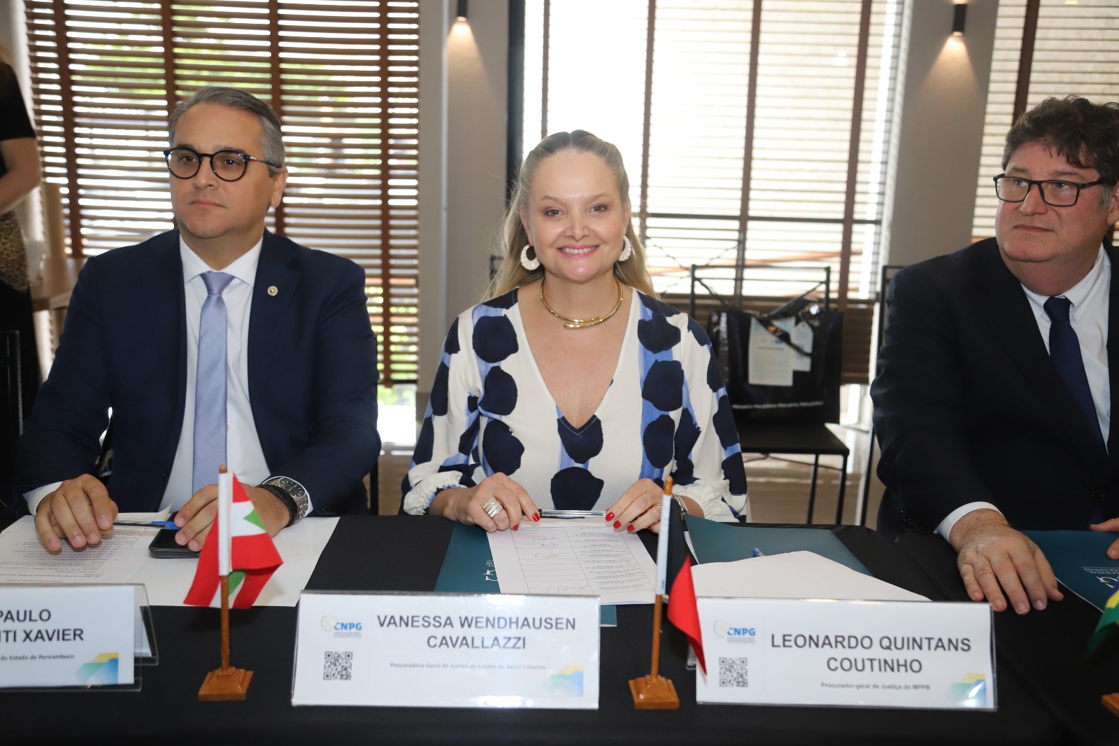 A Procuradora-Geral de Justiça do Ministério Público de Santa Catarina (MPSC), Vanessa Wendhausen Cavallazzi, participou na quinta-feira (9/10), em Vitória, no Espírito Santo, da 5ª Reunião Extraordinária do Conselho Nacional de Procuradores-Gerais do Ministério Público dos Estados e da União (CNPG). O encontro ocorreu paralelamente ao IV Congresso Estadual de Membros do Ministério Público do Estado do Espírito Santo (MPES), reunindo autoridades do Ministério Público de todo o país.