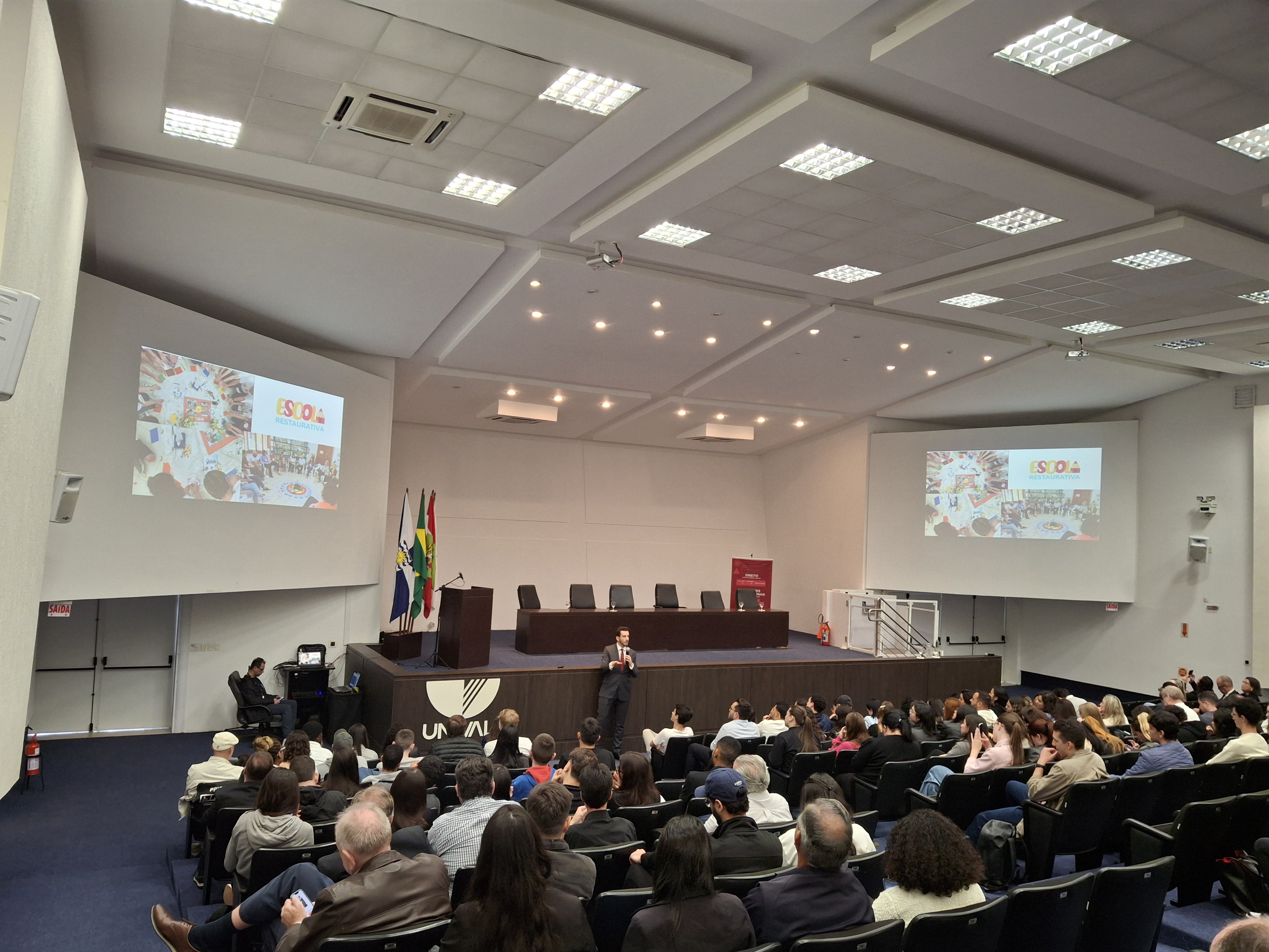Ao longo da apresentação, Stefano abordou as opções de escolhas e trouxe conceitos referenciais da construção da moral e da ética. Entre outros pontos, falou também sobre o programa de Justiça Restaurativa, as funções do MP e as principais áreas de atuação. “Trabalhamos com os alunos a construção de uma cultura ética e as novas formas de combate à corrupção. Essa etapa do Educando Cidadãos, em conjunto com a Univali, busca fomentar o programa. Ficamos muito felizes com o término desse ciclo e encerramos já com olhares para o futuro de novas iniciativas com os parceiros do programa”, relatou.