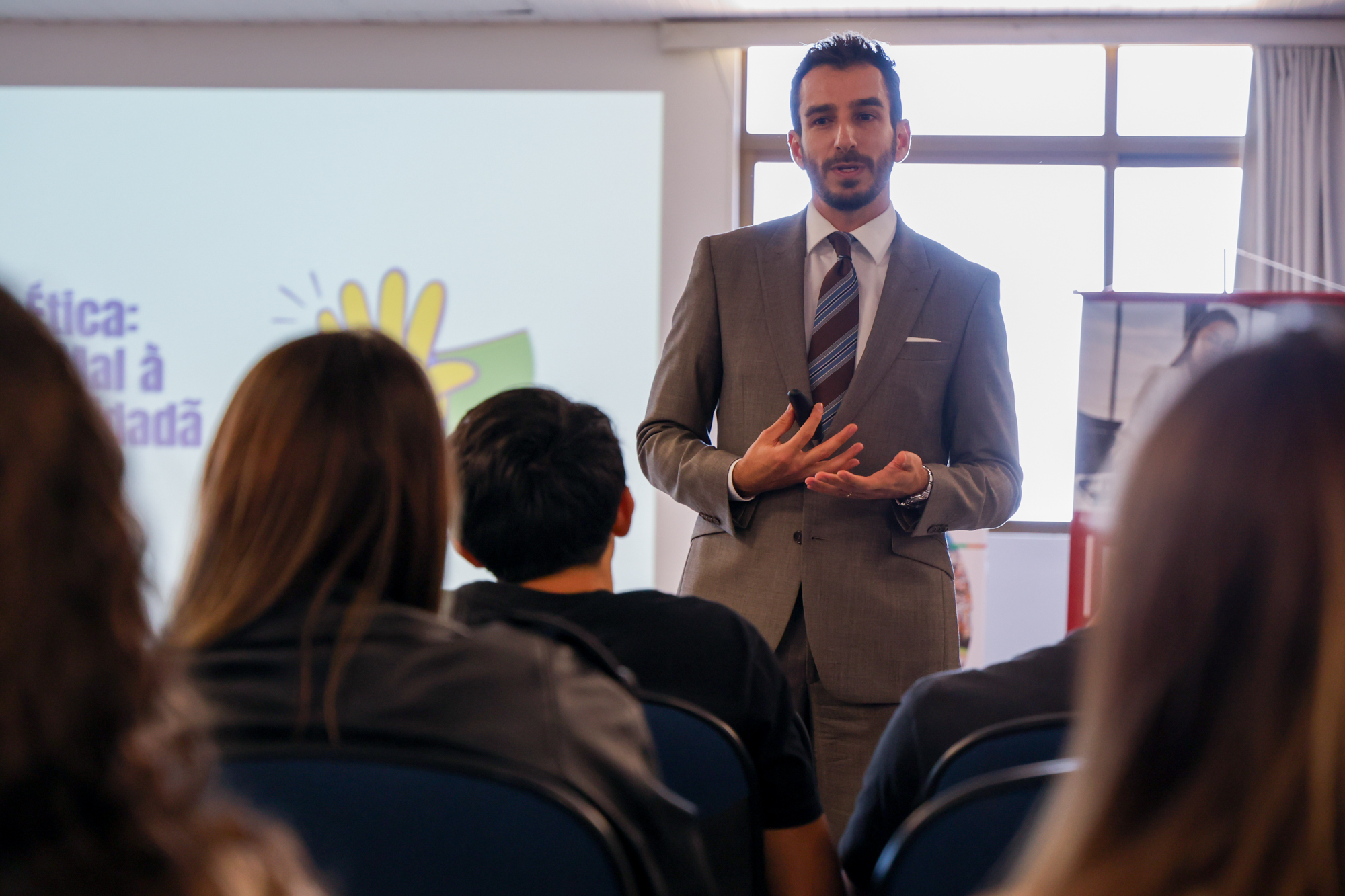 O Promotor de Justiça Stefano Garcia da Silveira ministrou a palestra “Por uma cultura ética: da banalidade do mal à responsabilidade cidadã”. “Promover reflexões sobre dilemas éticos, compreender as novas estratégias de enfrentamento à corrupção e fomentar a construção de uma sociedade mais justa e solidária não são apenas objetivos e sim compromissos que orientam cada ação do programa Educando Cidadãos”, afirmou.