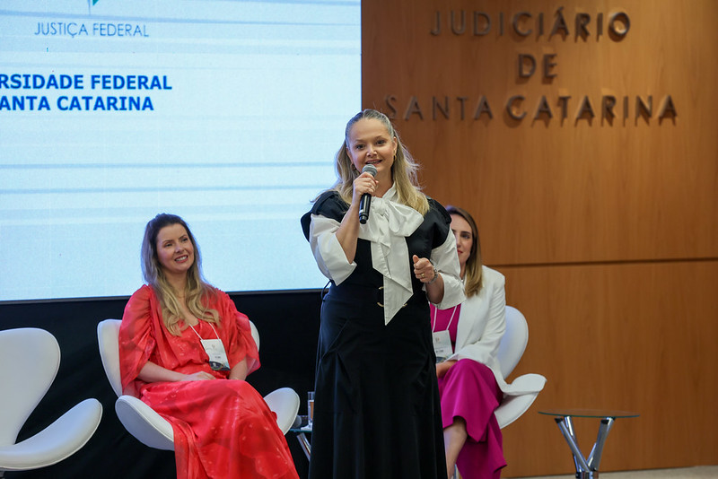 Também participaram do painel a Pedagoga e Fundadora do Instituto Katiane Boschetti - Desenvolvimento Humano, Katiane Boschetti da Silveira, e as Juízas Federais Adriana Regina Barni e Micheli Polippo. A moderação foi realizada pela Juíza de Direito do TJSC Fabrícia Alcântara Mondin.