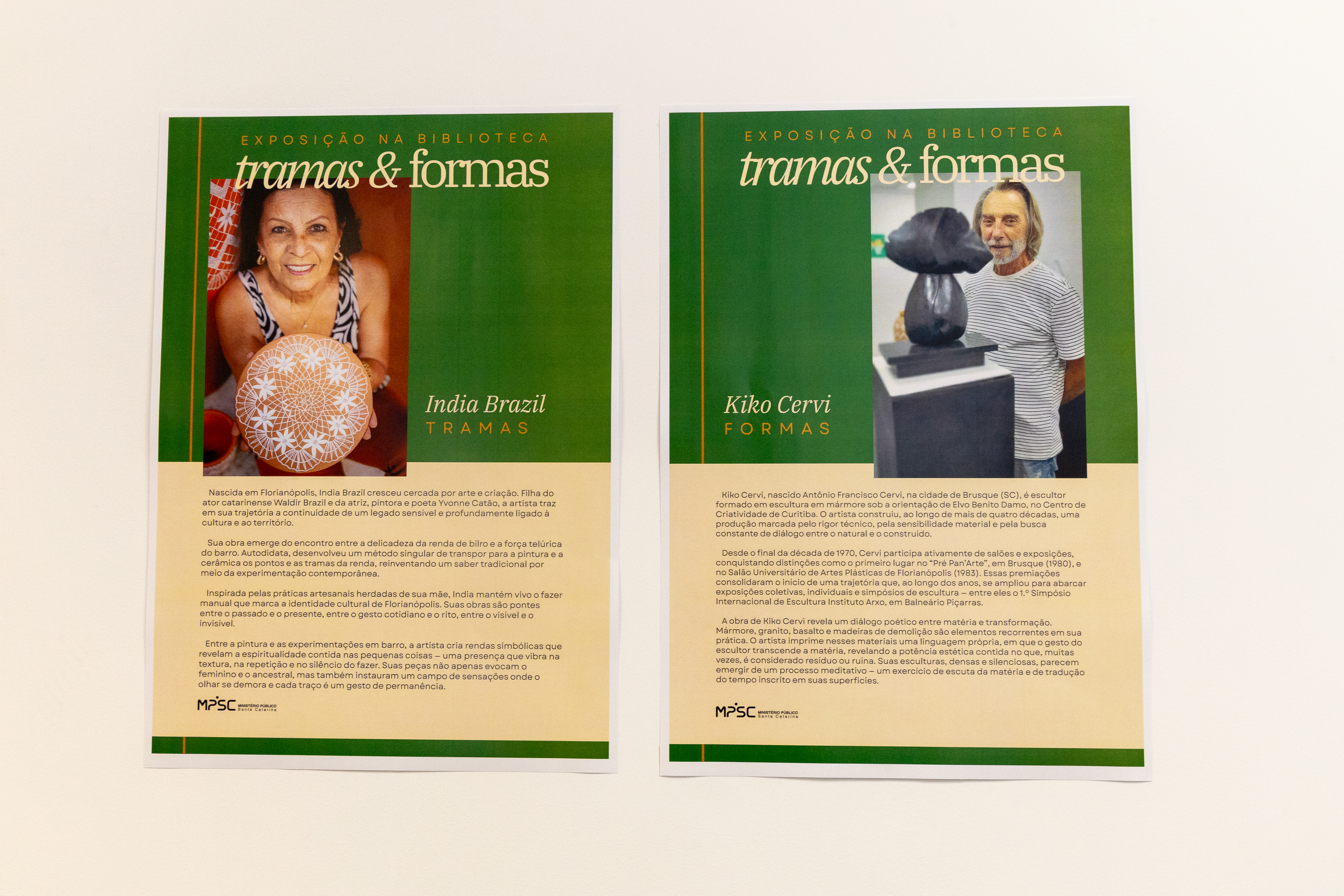 “O objetivo é que a Biblioteca Ruy Olympio de Oliveira seja reconhecida não apenas pelo seu rico acervo físico, mas também como um espaço vivo de convivência, encontro e circulação de ideias”. É assim que a Gerente da Biblioteca do Ministério Público de Santa Catarina (MPSC), Andrea Aparecida Silva, resume a ideia de trazer a exposição artística “Tramas e Formas” para o local. A mostra, inaugurada nesta terça-feira (18/11), reúne obras dos artistas catarinenses India Brazil e Kiko Cervi.