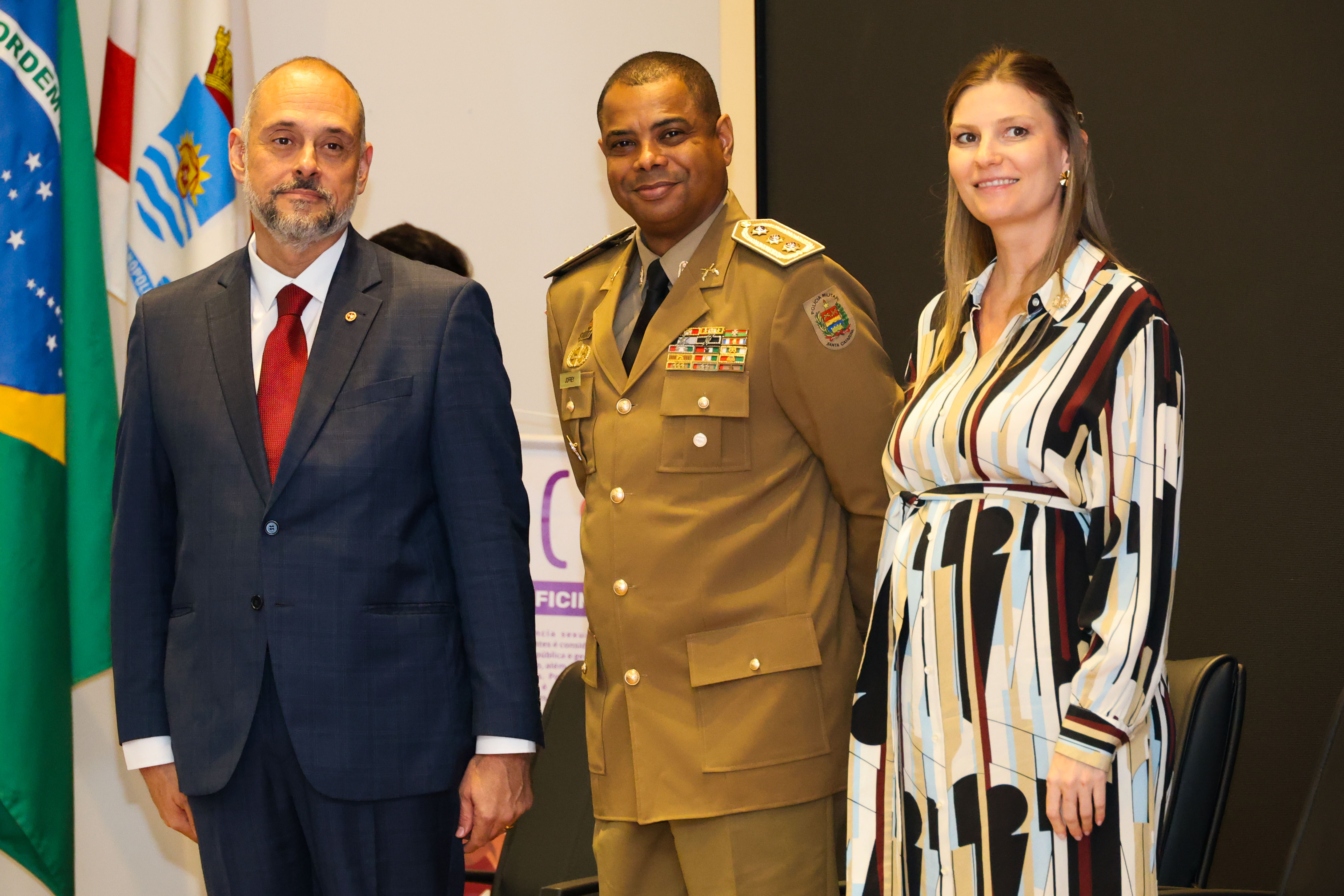 Juntamente ao Coordenador do GAECO, participaram do painel a Perita-Geral, Andressa Boer Fronza, e o Subcomandante-Geral da Polícia Militar, Jofrey dos Santos Silva.