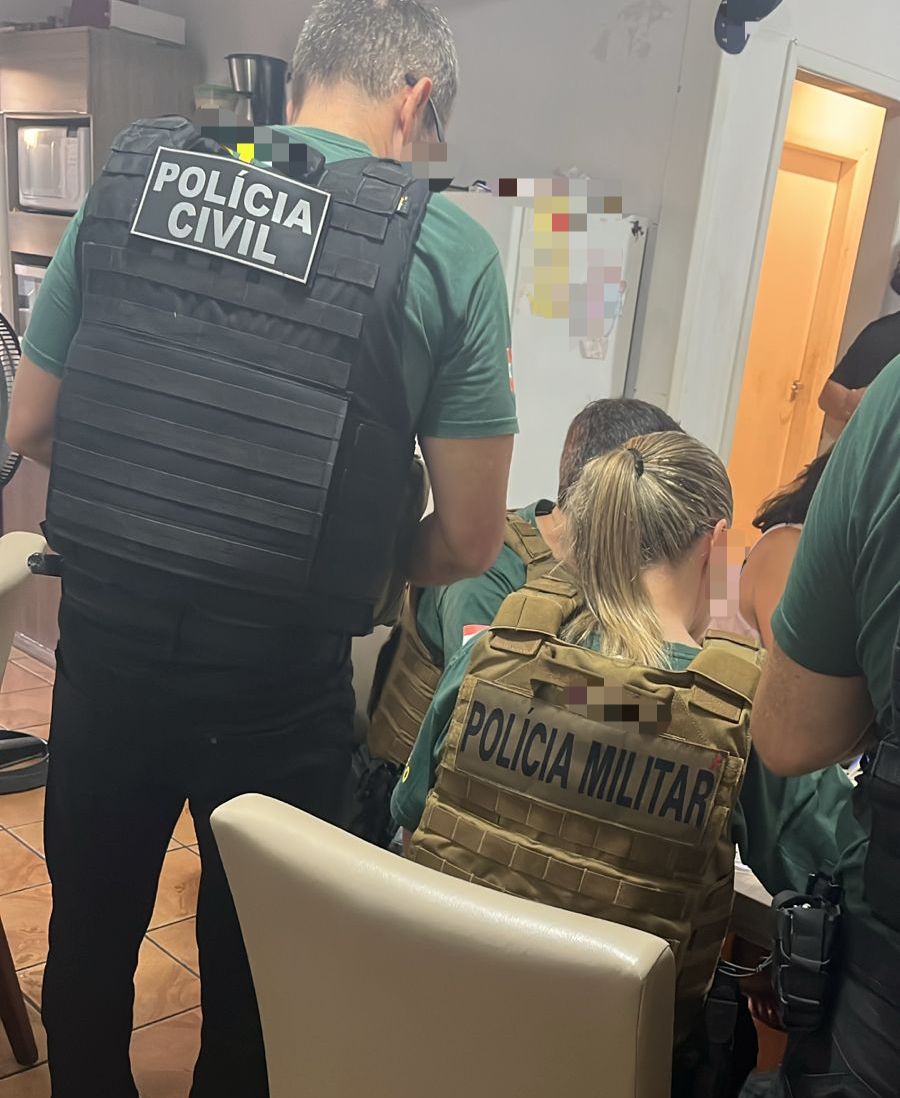 Um mandado de busca e apreensão foi cumprido em Balneário Camboriú. Investigação apura esquema criminoso que desviou recursos públicos do IPE Saúde para tratamentos médicos domiciliares solicitados judicialmente.