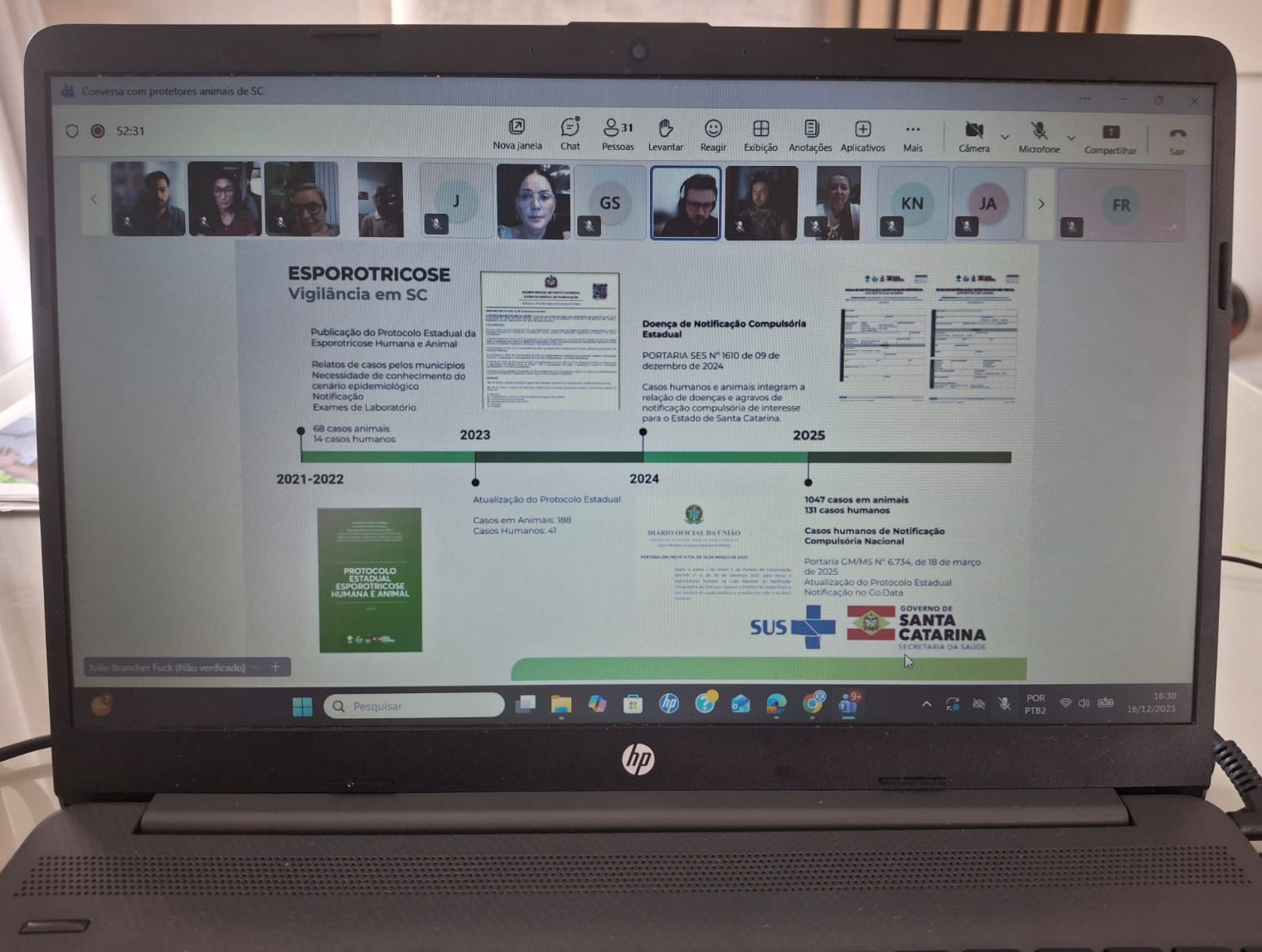 Grupo Especial em Defesa do Direitos dos Animais do MPSC promove discussão sobre combate ao avanço da esporotricose animal