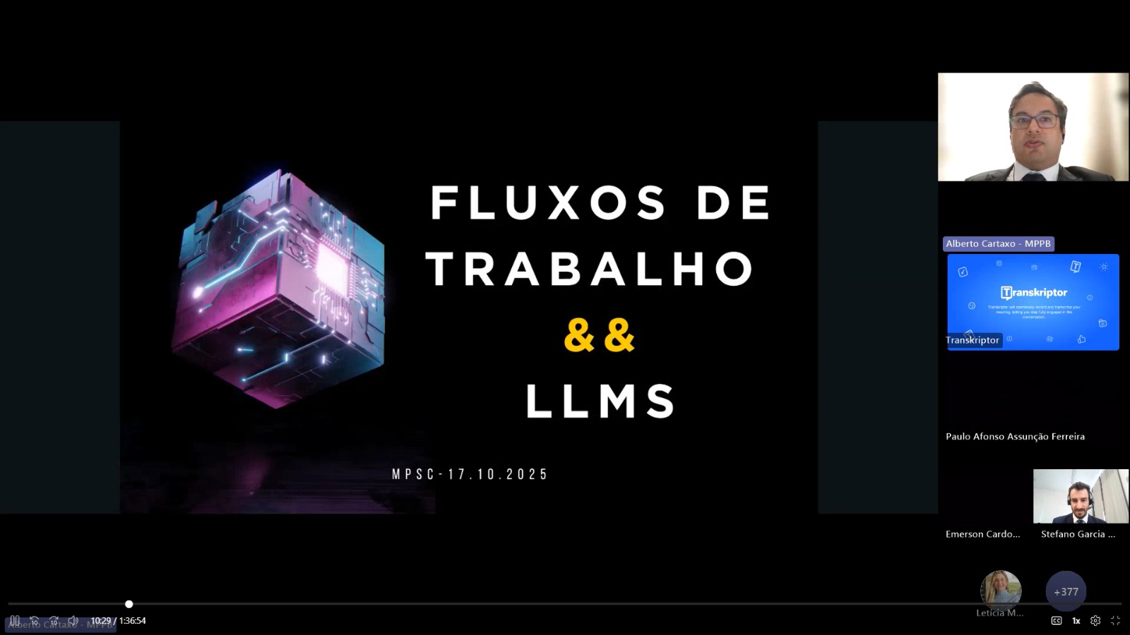Durante a nona aula do Programa de Difusão em Inteligência Artificial, Promotor de Justiça do MPPB apresentou ferramentas como LLM e n8n.