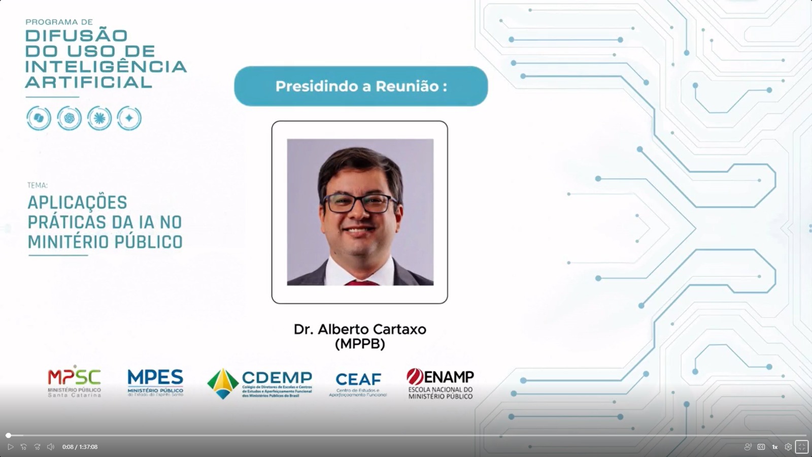 Ministrada pelo Promotor de Justiça do Ministério Público da Paraíba (MPPB) Alberto Cartaxo, a nona aula da Capacitação em Engenharia de Prompts do Programa de Difusão em Inteligência Artificial abordou aplicações práticas da IA no Ministério Público.