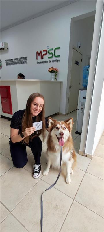 Com o apoio do MPSC, o projeto com os cães Stiles e Beti leva ações a escolas e oferece o acompanhamento de audiências com adolescentes autores de atos infracionais no CREAS. O foco é promover empatia, saúde mental e posse responsável dos animais.