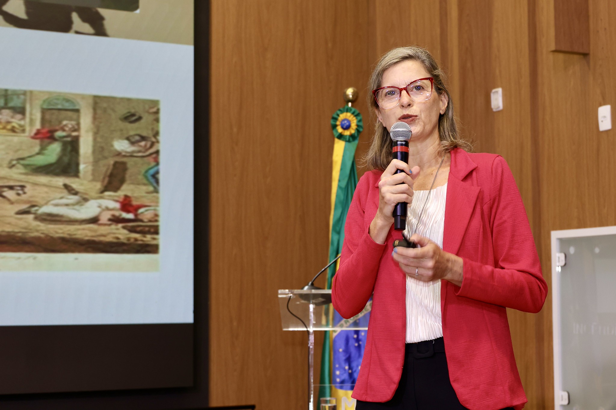 A Procuradora-Geral de Justiça citou como avanços do MPSC ações como manejo populacional ético, programas de castração, educação ambiental, orientação técnica aos municípios, produção de materiais de referência e articulação permanente com a rede de proteção. Destacou ainda a Cartilha de Bem-Estar Animal produzida pelo GEDDA e o diálogo ampliado com instituições parceiras para enfrentar desafios complexos, como a proteção da fauna e o avanço da esporotricose animal, que exige resposta integrada entre saúde pública e proteção animal. Vanessa também reforçou a importância das perícias em crimes de maus-tratos e apresentou dados que evidenciam a intensidade da atuação institucional. “Só no último ano, o MPSC ajuizou cerca de 400 ações criminais relacionadas a maus-tratos, o que revela que não estamos diante de fatos isolados, mas de um problema estrutural que exige vigilância contínua”, apontou.