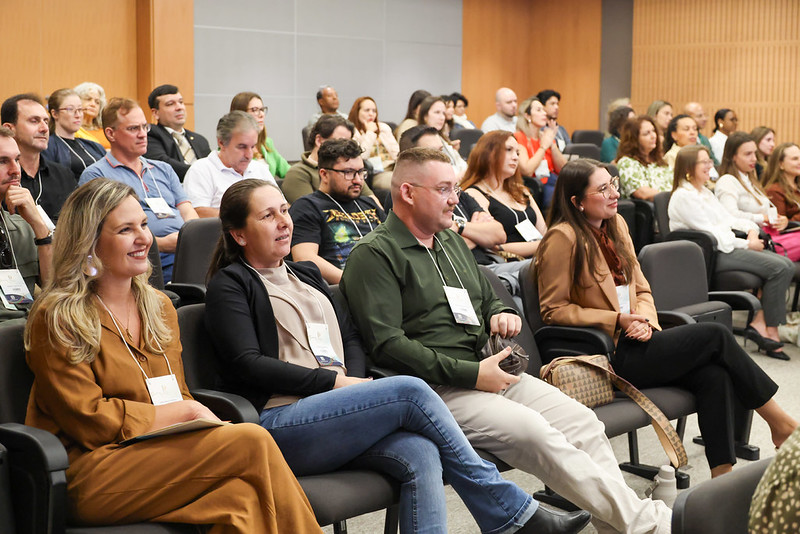 O primeiro painel debateu o tema “Construindo o Futuro: Experiências Legislativas Municipais”. A Promotora de Justiça do MPSC Caroline Cabral Zonta, da 1ª Promotoria de Justiça da Comarca de Camboriú, abordou a experiência de atuação com a Justiça Restaurativa e com os círculos de construção de paz no município. A integrante do MPSC traçou uma linha do tempo sobre todo o movimento realizado desde 2023 com o objetivo de conseguir a aprovação da Lei Municipal n. 3.698, de 10 de outubro de 2025, que trata do Programa de Construção da Cultura da Paz na cidade. “Nossa proposta tem como finalidade promover a cultura de paz e a convivência harmônica por meio de ações preventivas, formativas e participativas inspiradas no princípio da Justiça Restaurativa escolar e destinadas à valorização do diálogo, ao fortalecimento dos vínculos e à escuta ativa no ambiente escolar, porque nossas crianças estão precisando ser ouvidas”, destacou.