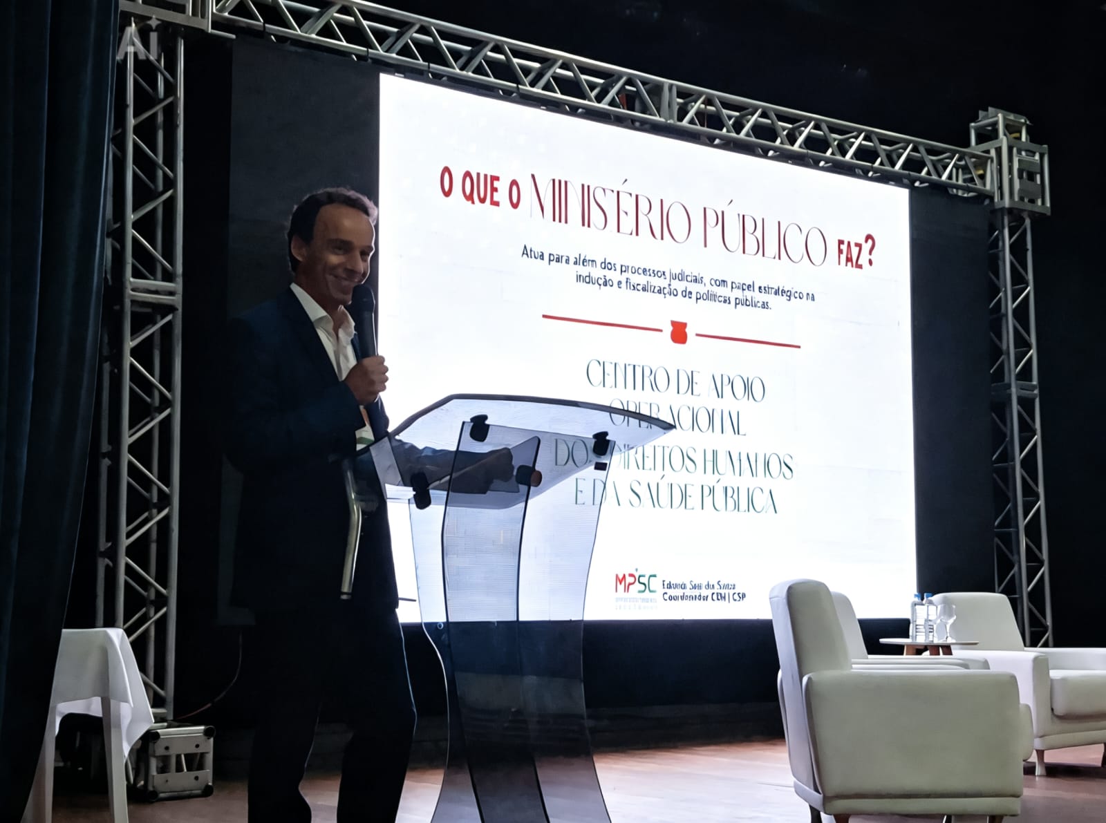 O Ministério Público de Santa Catarina (MPSC) foi representado pelo Promotor de Justiça Eduardo Sens dos Santos, que coordena os Centros de Apoio Operacional dos Direitos Humanos e Terceiro Setor (CDH) e da Saúde Pública (CSP).