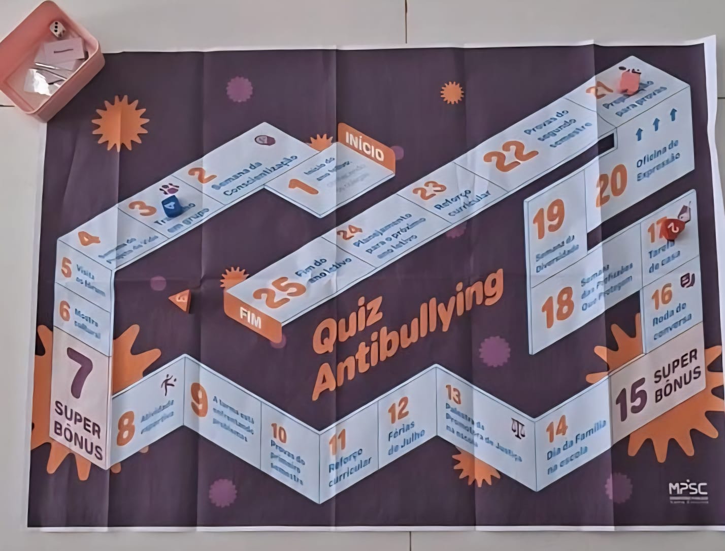O Quiz Antibullying, criado por uma Promotora de Justiça do Ministério Público de Santa Catarina, agora possui duas versões: a de perguntas e respostas, que é direcionada aos adolescentes, e a de tabuleiro, que tem como público-alvo as crianças.