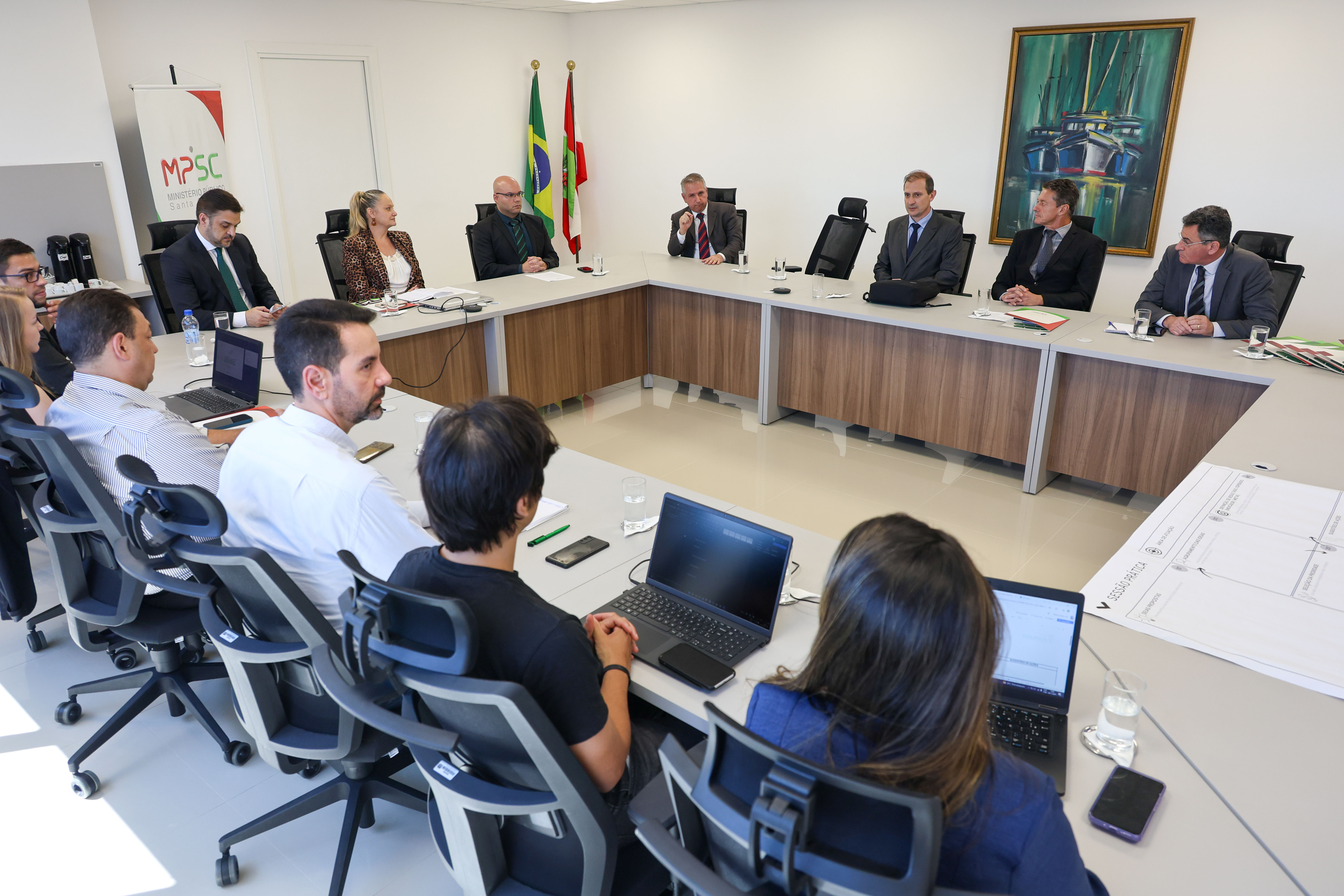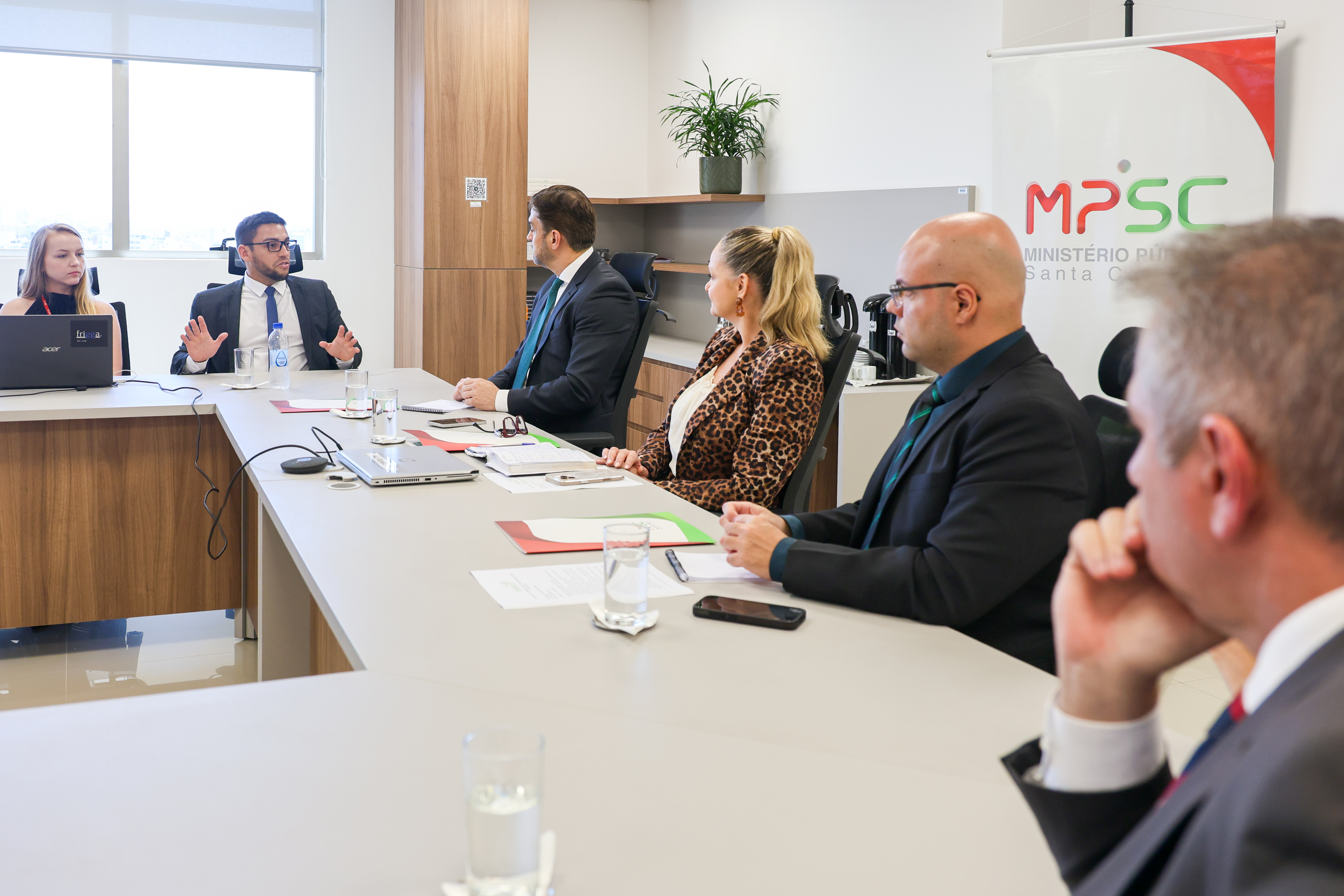 Durante o encontro, foram apresentados dados e diagnósticos que embasam a atuação do MPSC na ordem tributária, com o objetivo de aprimorar a entrega institucional e fortalecer a colaboração com a Secretaria da Fazenda.