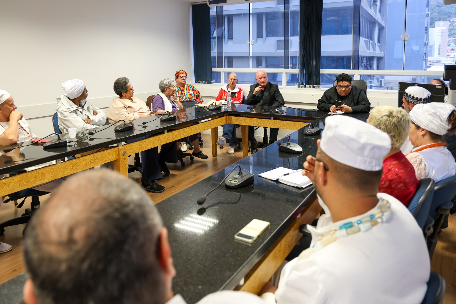 Na reunião, que debateu a criação de mecanismos para combate à intolerância religiosa, também estiveram representantes e lideranças religiosas de matriz africana da Grande Florianópolis e do Sul catarinense, Comissão de Igualdade Racial da OAB Palhoça, Defensoria Pública, assessores de parlamentares e os Vereadores Carla Ayres e Leonel Camasão.