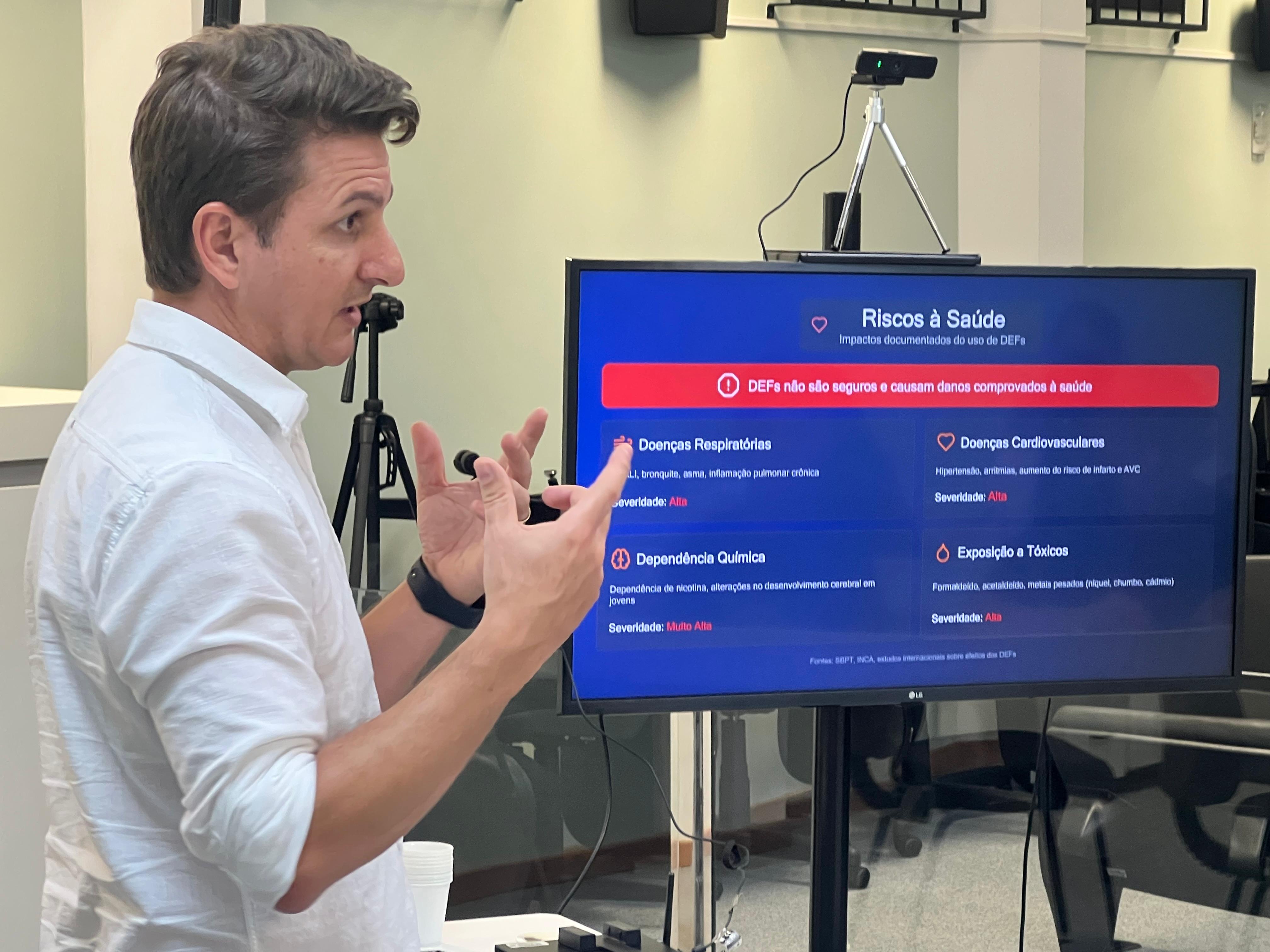 Durante o encontro, a Promotoria reforçou que cigarros eletrônicos e dispositivos similares são proibidos no Brasil pela Resolução da Diretoria Colegiada n. 46/2009 da Anvisa, que veta a comercialização, importação e propaganda desses produtos. A proibição foi mantida pela agência em 2022, por ausência de comprovação de segurança.